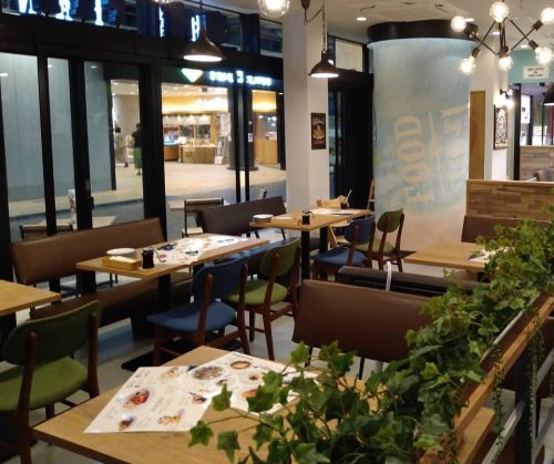 후추 역 직결로 액세스도 발군 ♪ 상쾌한 블루가 빛나는 점내에는 테이블 석과 테라스 석 등 총 60 석을 준비.